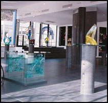 Atelier de verre soufflé situé à Skive (Danemark) dans lequel Jane Helledie produit de la verrerie d'art ainsi que des sculptures.